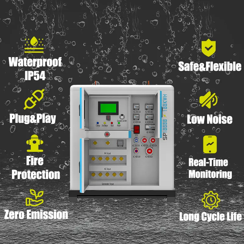 The Off Grid 180kWh LiFePO4 Battery Hybrid Solar System boasts an impressive 188 kWh energy capacity and a system voltage of 576 V, offering multiple output options, including AC and DC ports. With an IP55 rating, it ensures reliability in demanding environments like construction sites and farms. Certified by CE, RoHS, MSDS, and UN38.3, it complies with international safety standards, enhancing market access and reliability. Its advanced air cooling system improves performance, while the 6000+ cycle life guarantees long-lasting use, making it a robust solution for high energy demands.